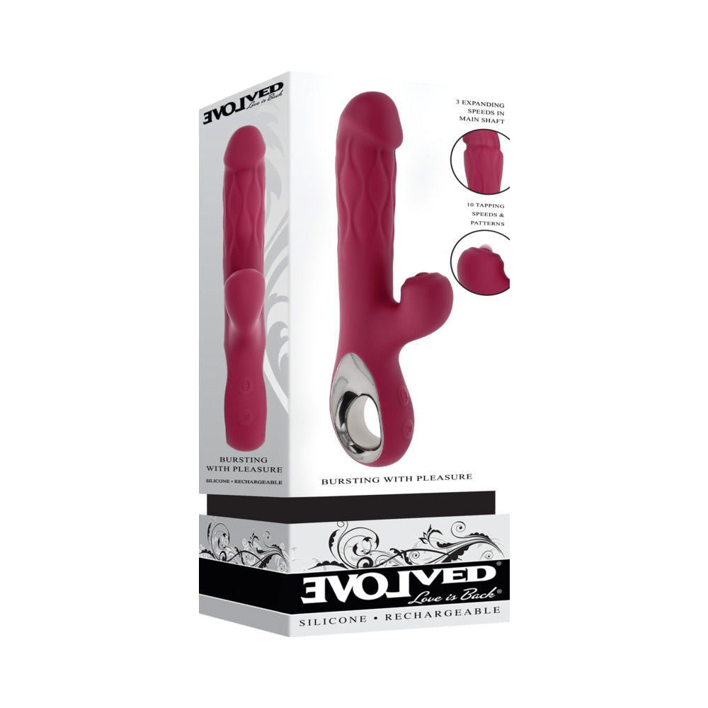 Burst with pleasure when you pump up the main shaft of this expanding dual vibrator that delivers a deliciously full feeling in 3 increasing sizes. The realistically-textured, flexible shaft moves with your body as it vibrates and expands, while the stimulator taps ceaselessly in multiple speeds, designed to hit its erogenous zone target with ease. A chrome-ringed handle offers extra comfort as you navigate the 2-button control panel to create your custom experience.10 vibration speeds & patterns in shaft head10 tapping speeds & patterns in stimulator3 motors controlled together & separatelyInsertable length 5.25", Insertable diameter 1.64"3 expanding speeds in main shaftHeight: 10", Depth: 2.96", Width: 1.64"Made from phthalate & latex-free silicone & ABSUSB magnetic rechargeable, cable includedWaterproofSHIPPING & RETURNS