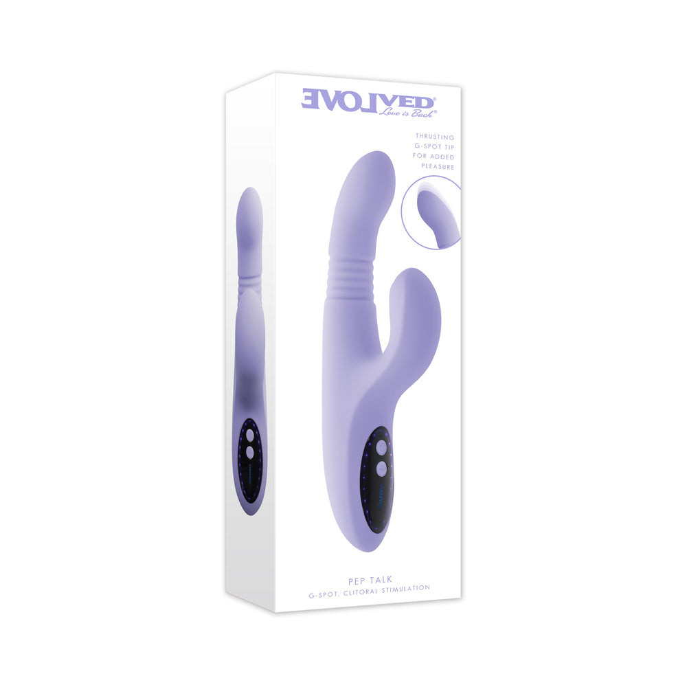 Pep Talk speaks fluent body language with its trio of powerful functions – thrusting and vibration for deep internal sensation and a flexible, tapping stimulator designed to pulse rhythmically against the clitoris. As intense pleasure builds, funky purple lights flash around the ergonomic control panel, adding a visual pop to cheer you on.10 thrusting & vibrating speeds & patterns10 tapping speeds & patternsInsertable length 4.75", diameter 1.45"Phthalate & latex-free siliconeRechargeable USB cable includedWaterproof IPX6 shower-friendlyLab tested body safeSHIPPING & RETURNS