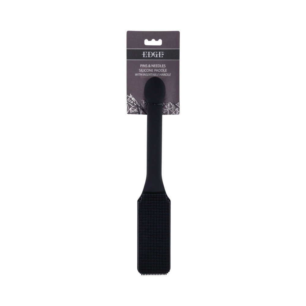 Heighten their anticipation with The Edge Pins & Needles Silicone Paddle and transform impact into art. Featuring a flexible silicone head lined with fine, needle-like silicone bristles, it delivers a concentrated, prickling sting that awakens the skin and heightens every nerve. Each swing balances control and cruelty, creating waves of sensation that linger long after the strike. The metal-reinforced, insertable handle delivers power, stability, and a satisfying versatility that transitions effortlessly from impact to indulgence. Crafted from 100% body-safe silicone, it's built for players who crave texture, tension, and control that goes beyond the ordinary.100% body-safe silicone exteriorMetal reinforced, insertable handle for control and versatilitySilicone 'pins & needles' head for a uniform, nerve-awakening intensityMaterials: 51% Iron Alloy, 49% SiliconeSHIPPING & RETURNS